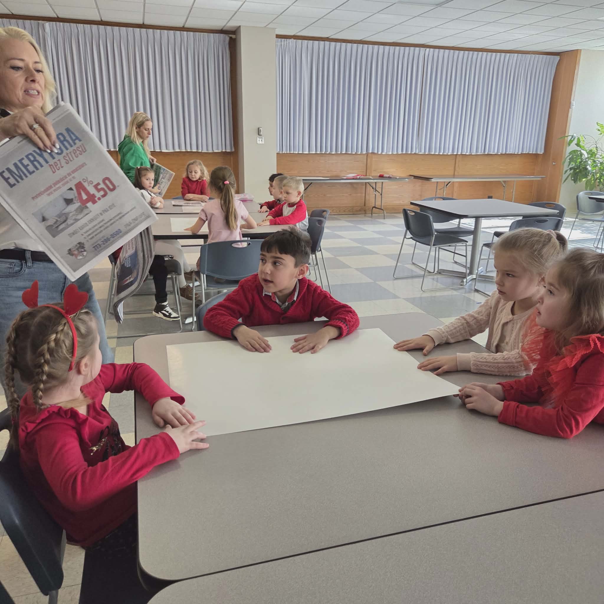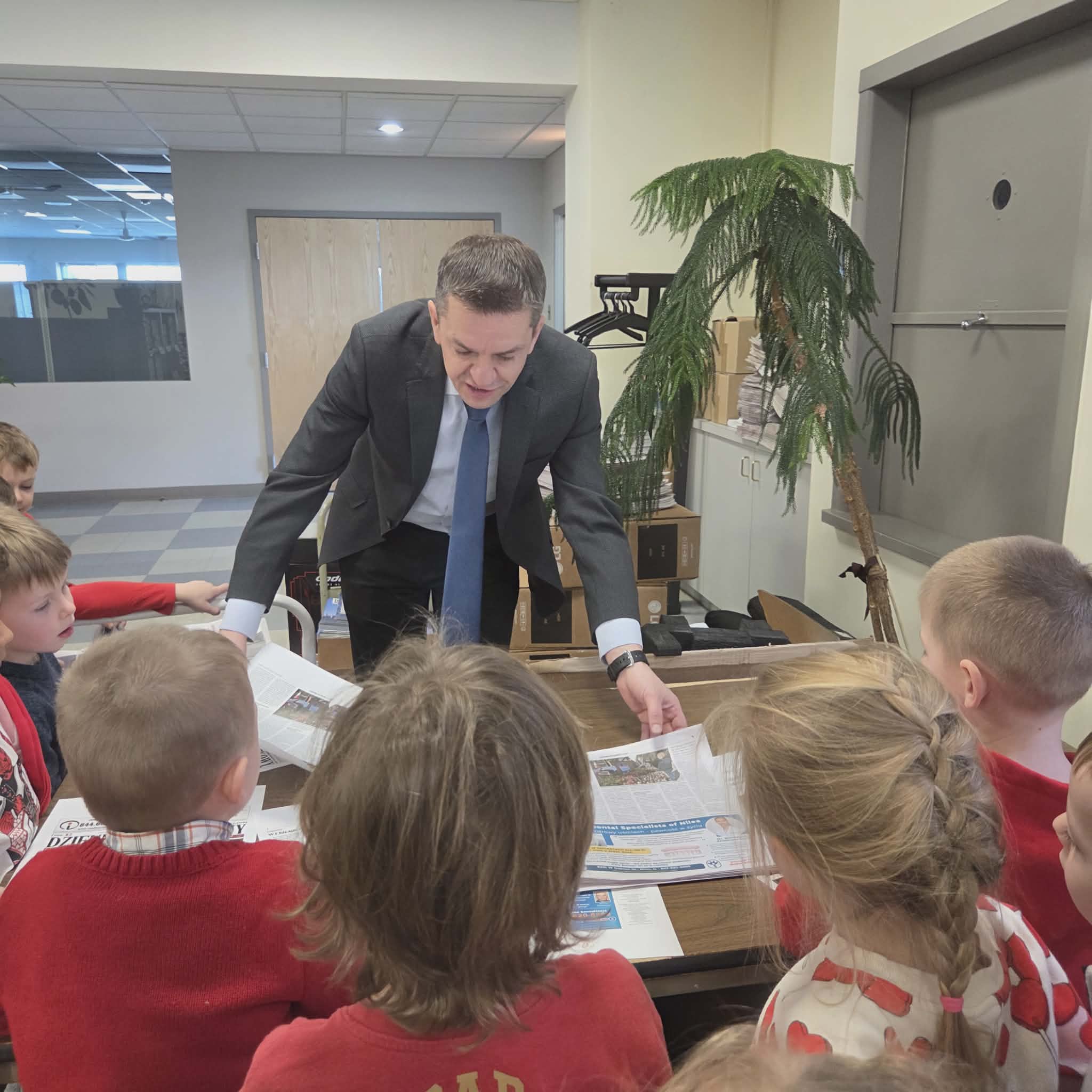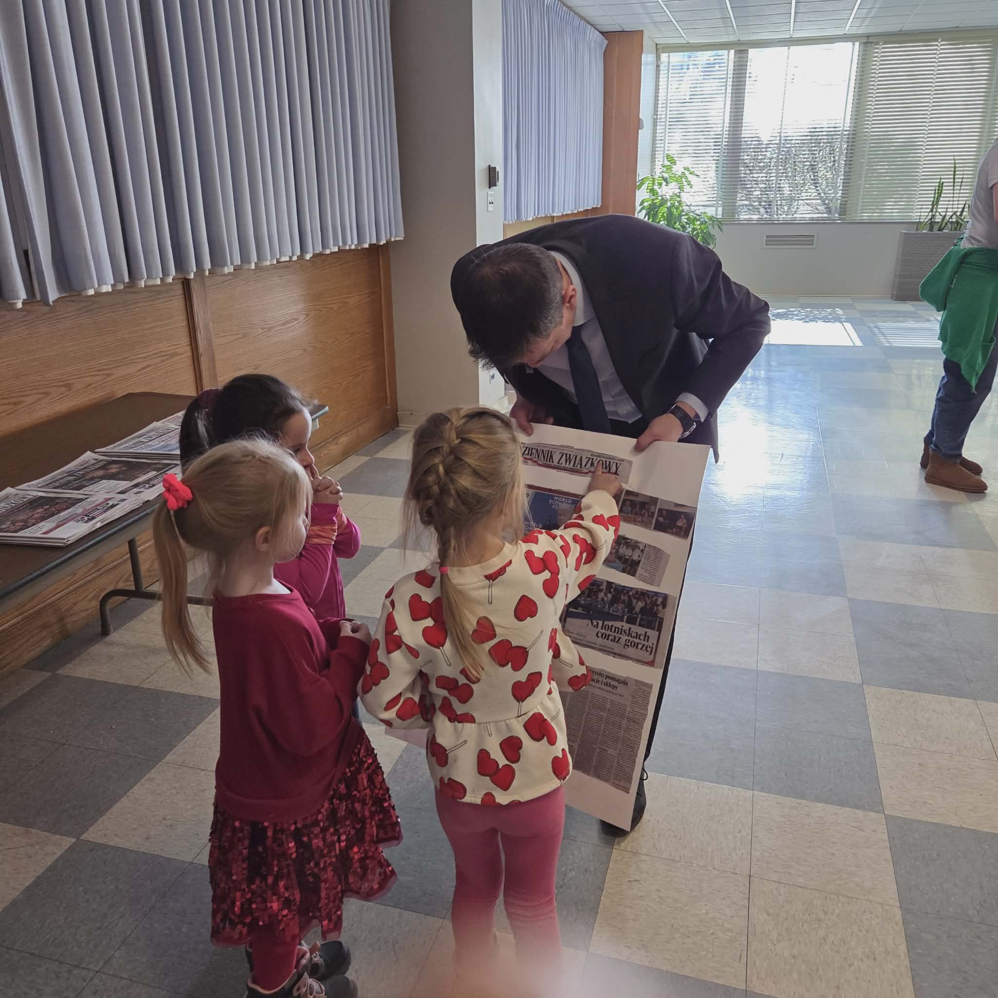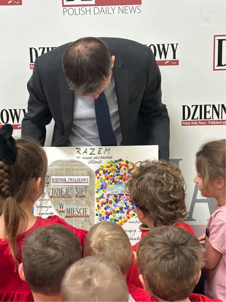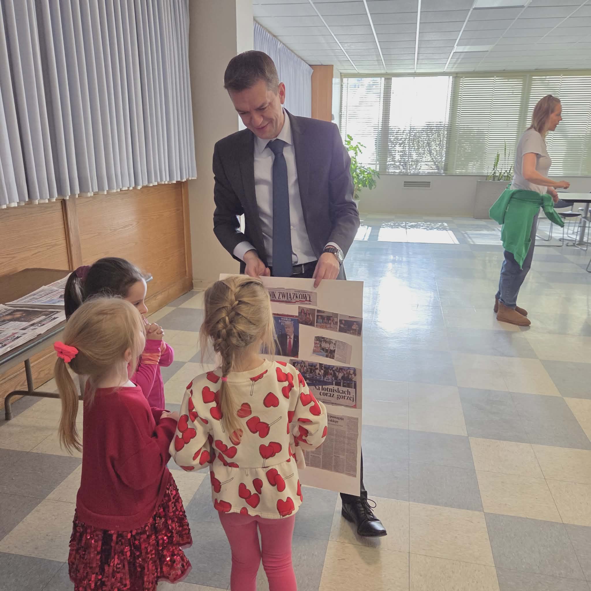Następnie dzieci przeszły do części gazety „Dziennik Związkowy”. Tam, dyrektor generalny gazety Pan Łukasz Dudka opowiedział dzieciom o pracy w gazecie. Pokazał wiele ciekawych rzeczy oraz podzielił się tajnikami pracy redaktorów. Na koniec naszego pobytu dzieci mogły poczuć się jak prawdziwi redaktorzy , tworząc w małych grupkach swoje gazety.