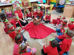 Dzisiaj wszystkie dzieci maszerowały do przedszkola z jabłkiem w ręku. Bo to JABŁKO było głównym bohaterem dzisiejszego dnia. Wszystkie grupy poszerzały wiedzę o tym owocu, poznając różne gatunki jabłek, rozpoznając ich kształt, zapach, kolor oraz smak. Zdobywały również wiadomości na temat potraw i przetworów z jabłek. Dzieci zajadaly się jabłkami , musem jabłkowym oraz piły sok z jabłek. Porównywalny smak rożnego koloru jabłek. Dzieci w tym dniu dowiedziały się również o tym jak rośnie jabłoń, zobaczyły na ilustracjach etapy rozwoju jabłka oraz obejrzały na obrazkach jak wygląda praca w sadzie. W każdej grupie działo się cos innego i bardzo ciekawego. Powstały nawet zapachowe jabłka przy użyciu cynamonu i goździków.