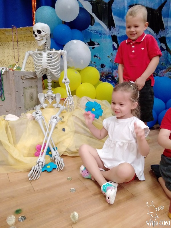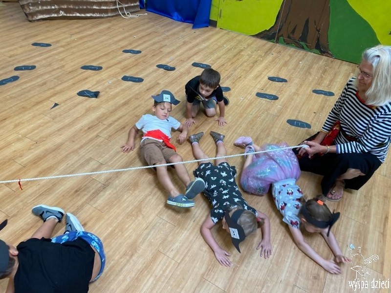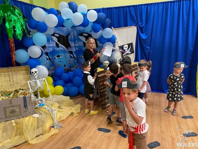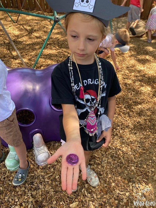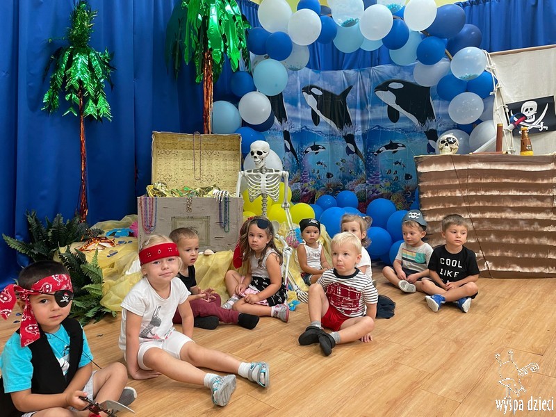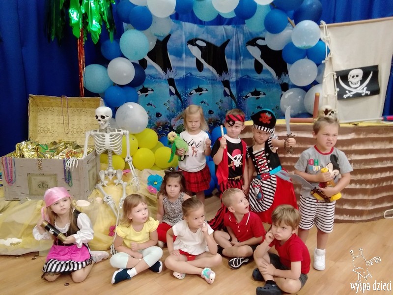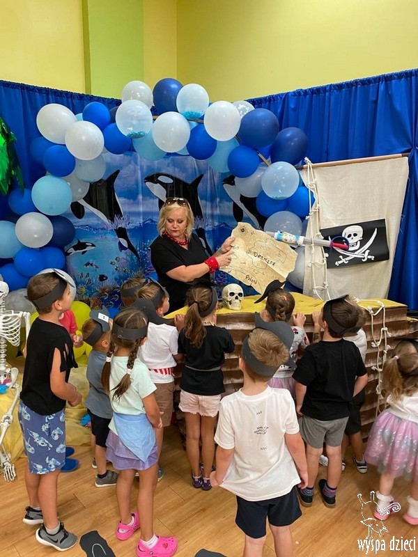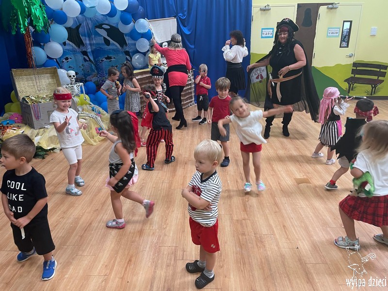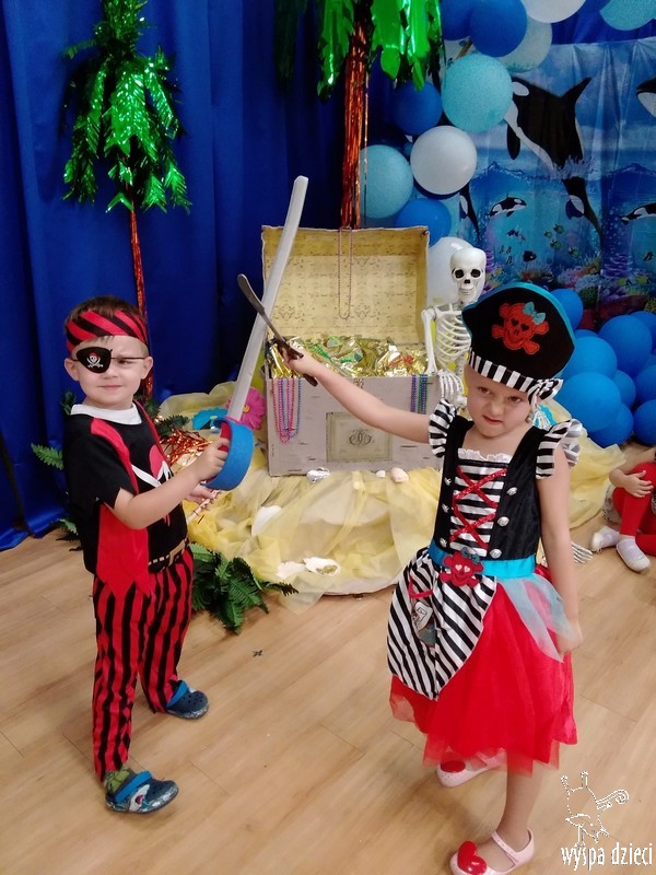 Wyspa Dzieci w tym tygodniu zmieniła się w Wyspę Skarbów . Przedszkolaki przebrane za piratów i piratki bawiły się w poszukiwanie skarbów, a także odtańczyły kilka wspólnych tańców w rytmach morskiej, pirackiej muzyki.