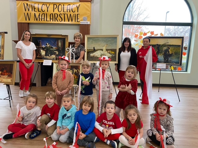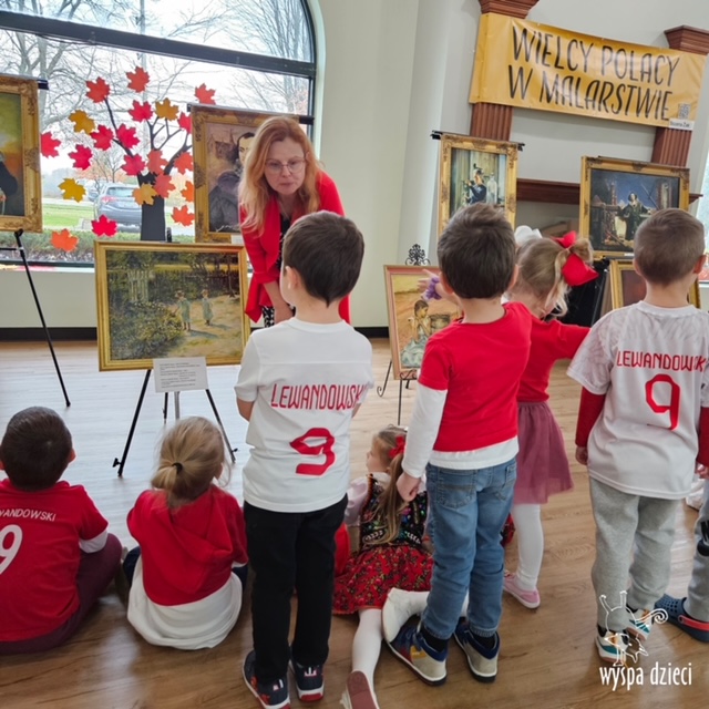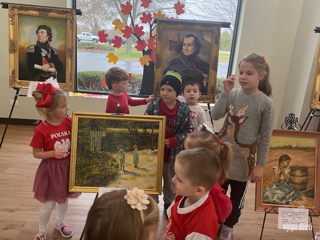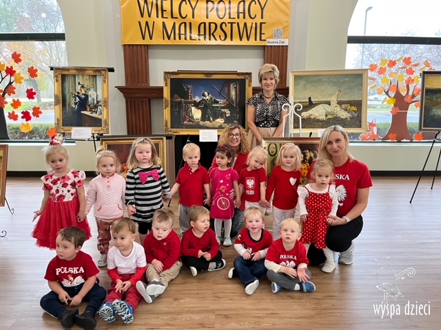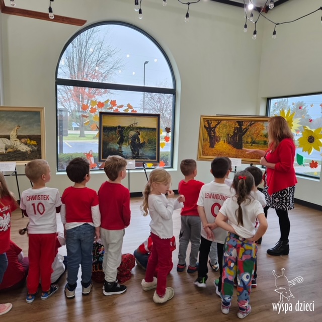 W tym roku przedszkolaki z Wyspy Dzieci w Algonquin w sposób niezwykły celebrowali Święto Odzyskania Niepodległości. Nasze maluchy, ale także ich rodzice mieli okazję zobaczyć niezywkłą wystawę prac pani Bożeny Żak pt. “Wielcy Polacy w malarstwie”, która została zorganizowana właśnie z okazji Dnia Niepodległości.