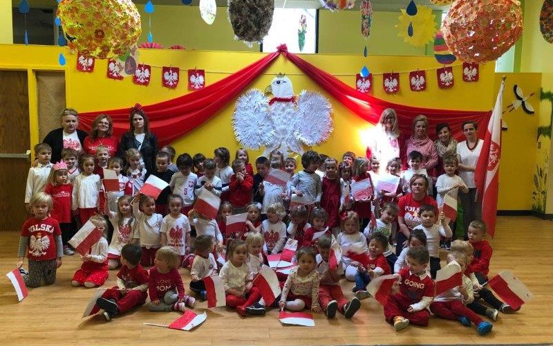 Później przyszła pora na świętowanie polskości. Wszystkie nasze przedszkolaki (Schiller Park/ Northbrook) wzięły udział w Trzeciomajowej Paradzie. Biało-czerwony pochód przeszedł wokół budynków Wyspy. Dzieci skandowały “Pol-ska”, “Pol-ska”, recytowały wierszyk “Kto ty jesteś?” i oczywiście śpiewały o tym, że “fajnie jest być Polką i Polakiem”. Rozpiera nas duma!