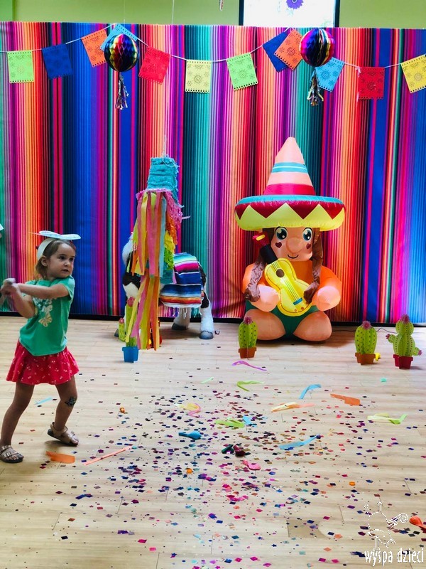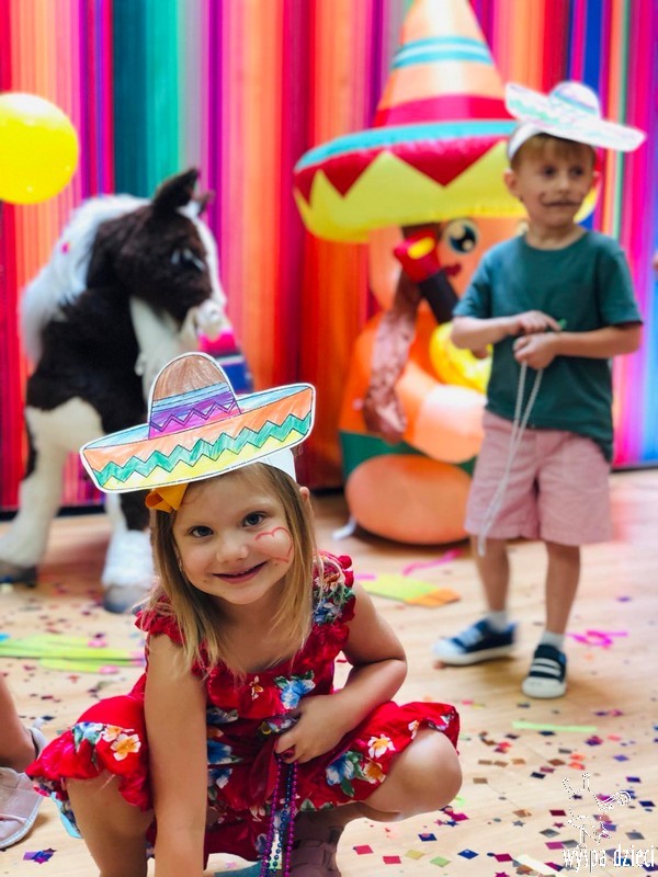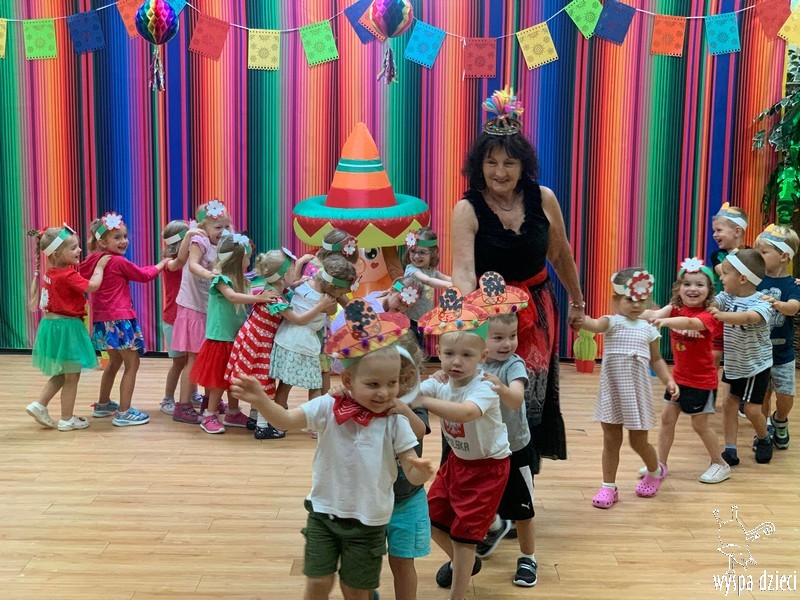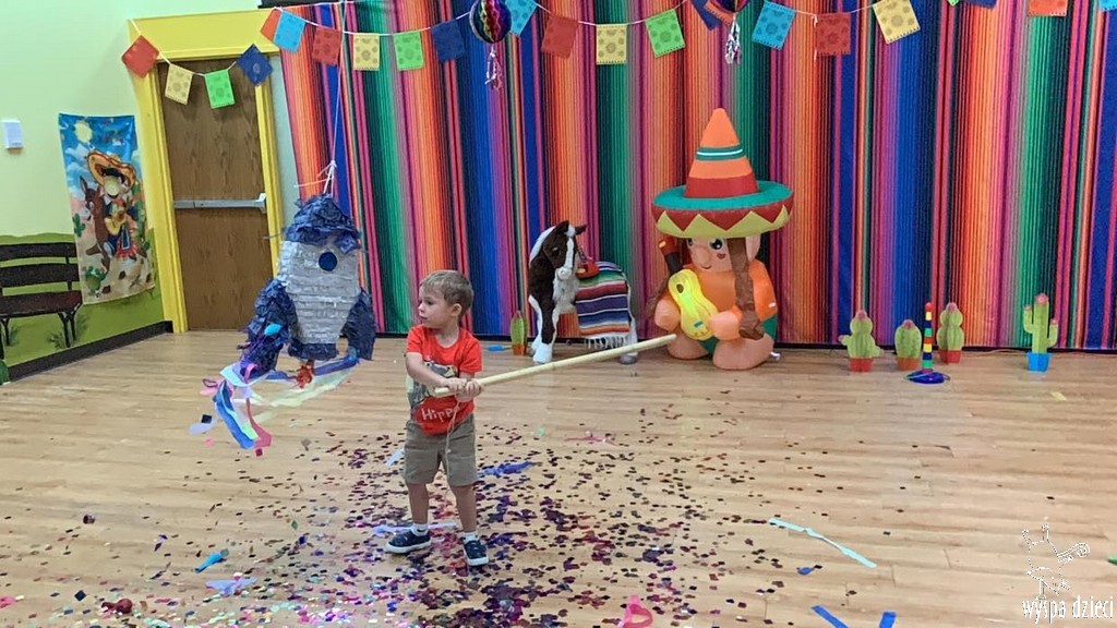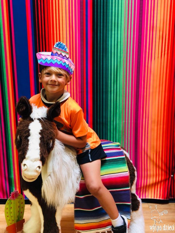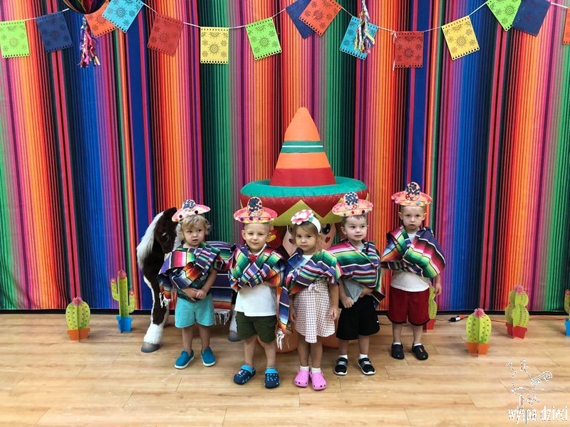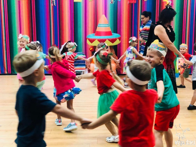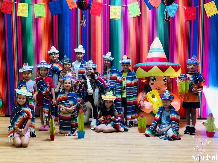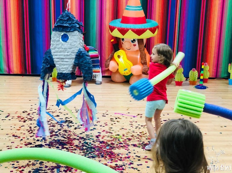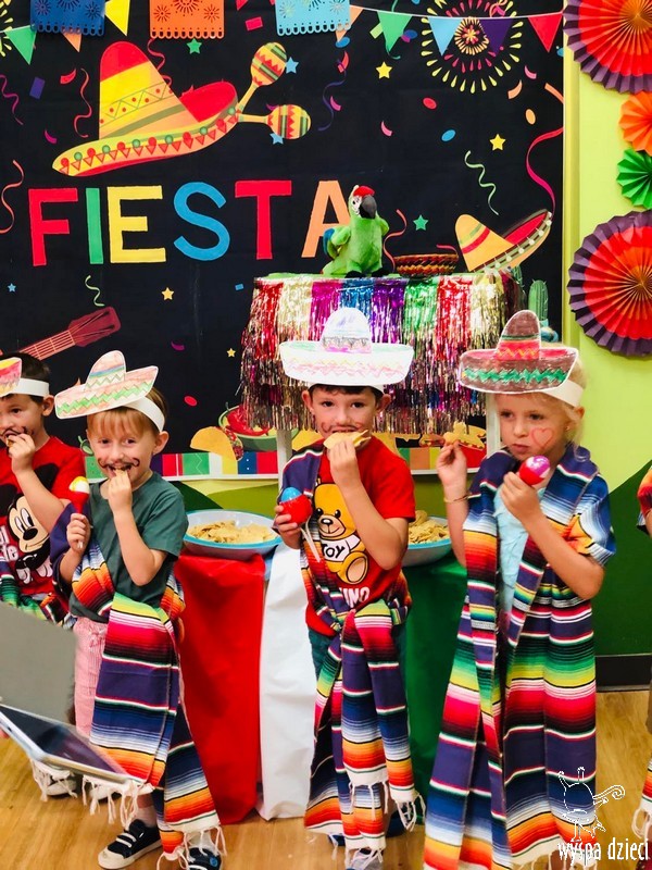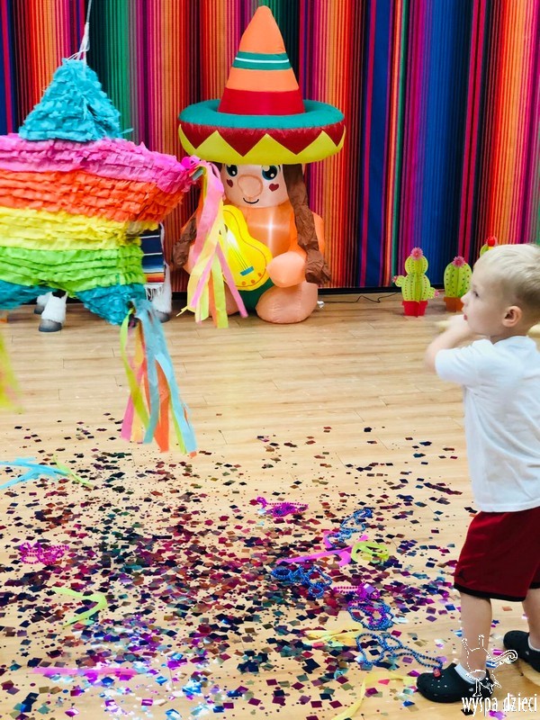 W ostatnim czasie nasze przedszkolaki wzięły udział w meksykańskiej fieście. Od samego rana w naszym przedszkolu rozbrzmiewały gorące rytmy, przy których dzieci odtańczyły kilka meksykańskich tańców. Wielką atrakcją było rozbijanie piniaty, a następnie zbieranie niespodzianek ukrytych w środku…