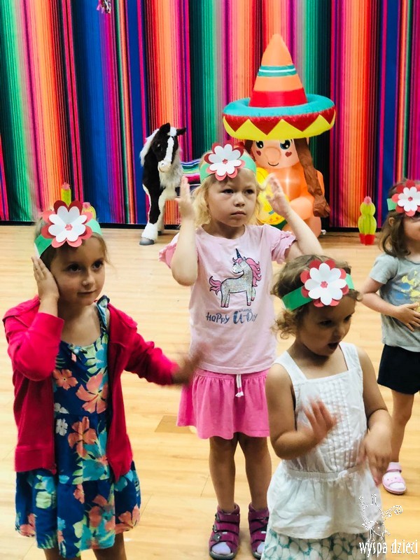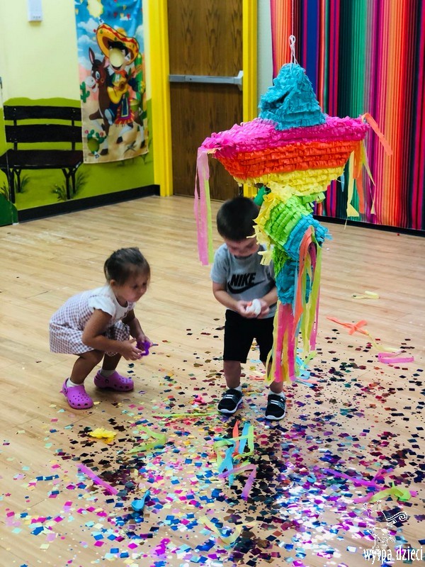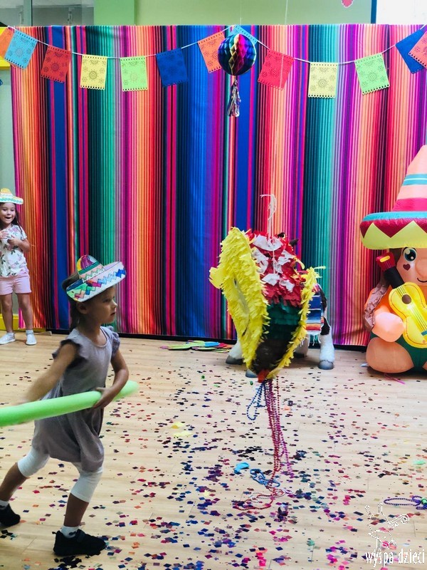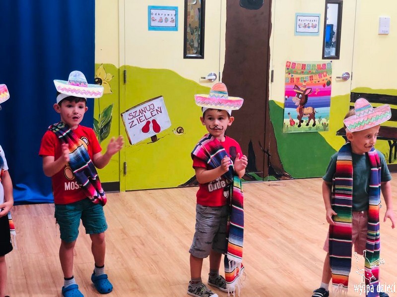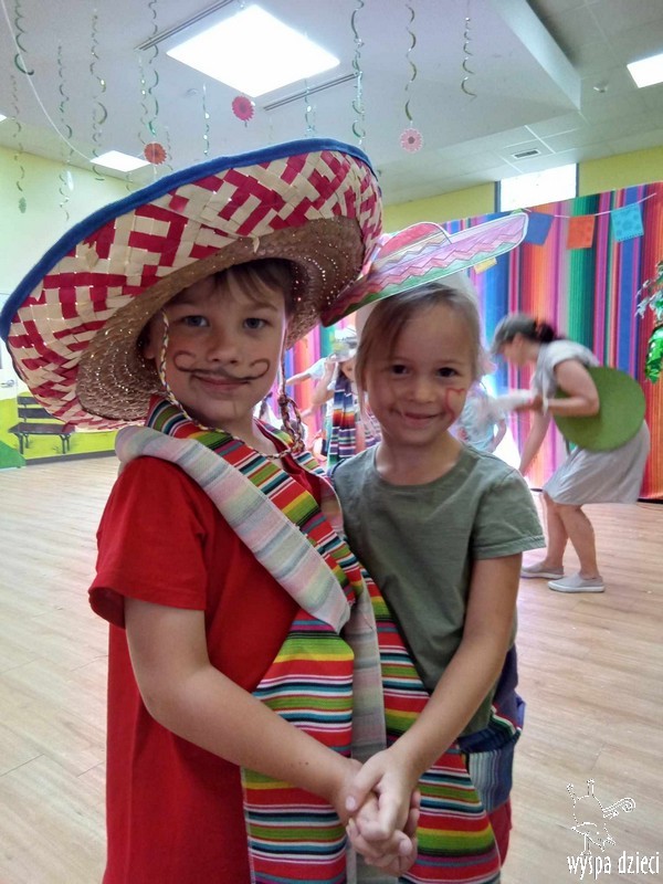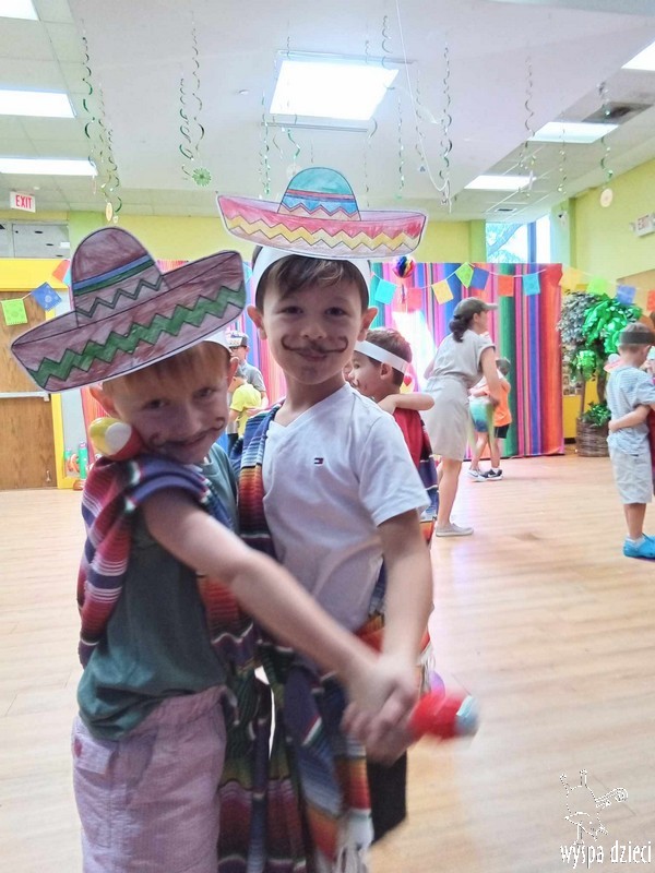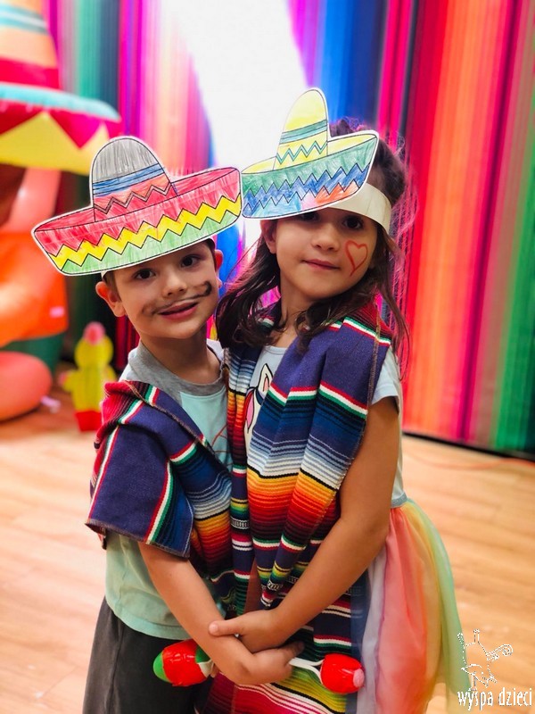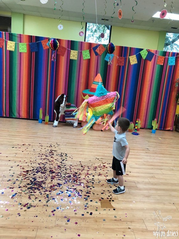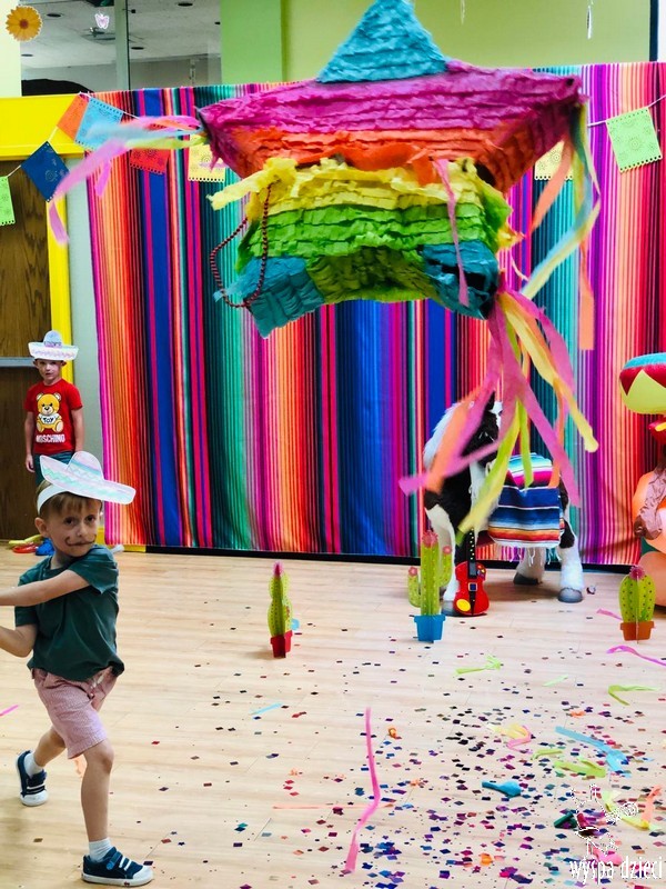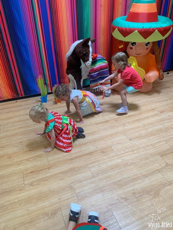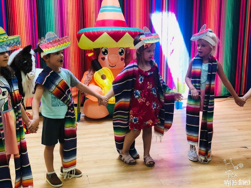 W ostatnim czasie nasze przedszkolaki wzięły udział w meksykańskiej fieście. Od samego rana w naszym przedszkolu rozbrzmiewały gorące rytmy, przy których dzieci odtańczyły kilka meksykańskich tańców. Wielką atrakcją było rozbijanie piniaty, a następnie zbieranie niespodzianek ukrytych w środku…