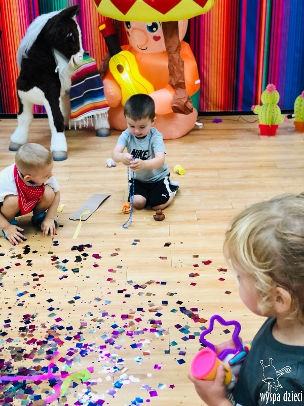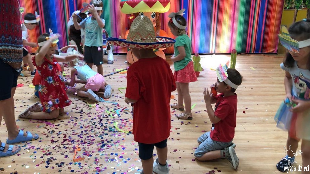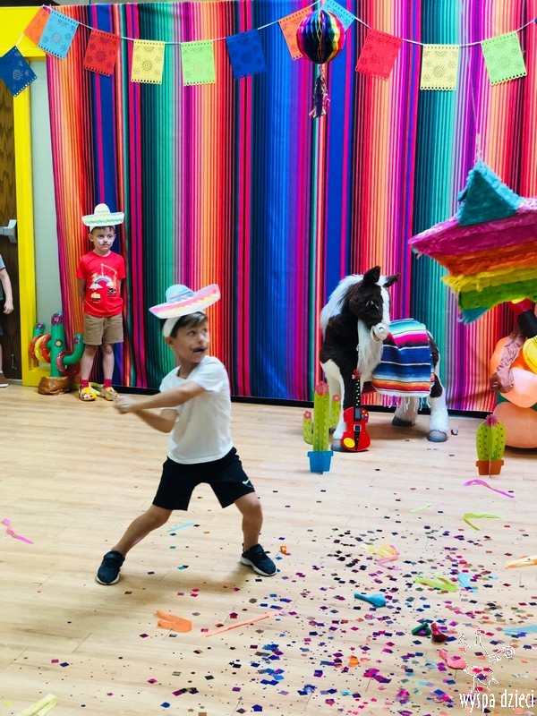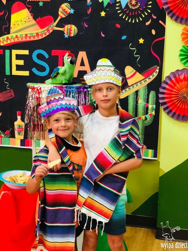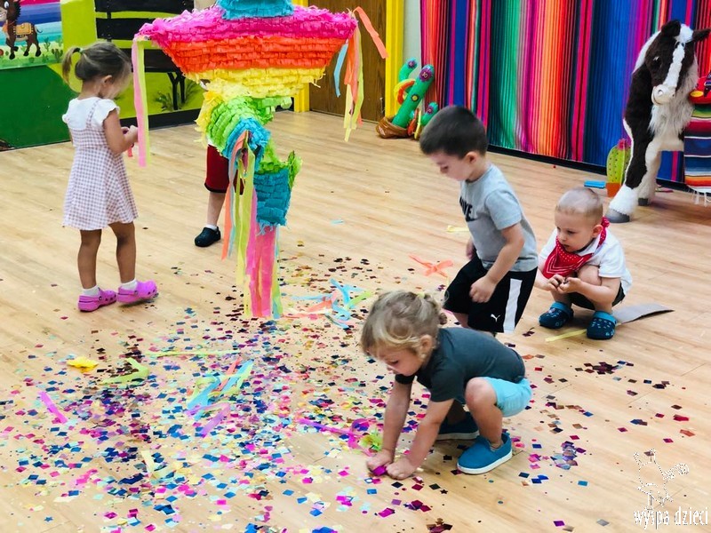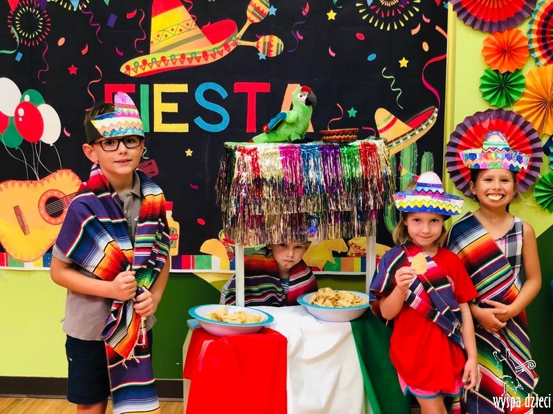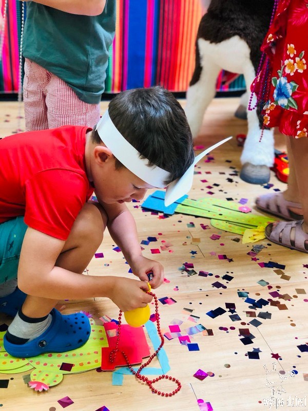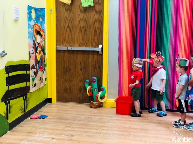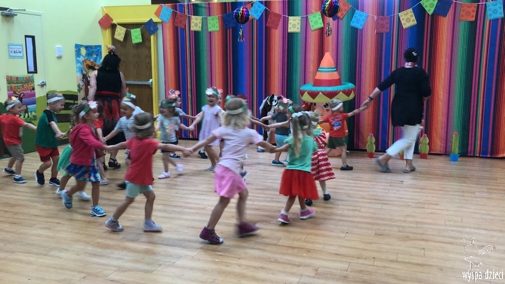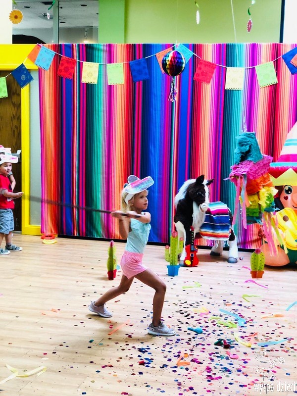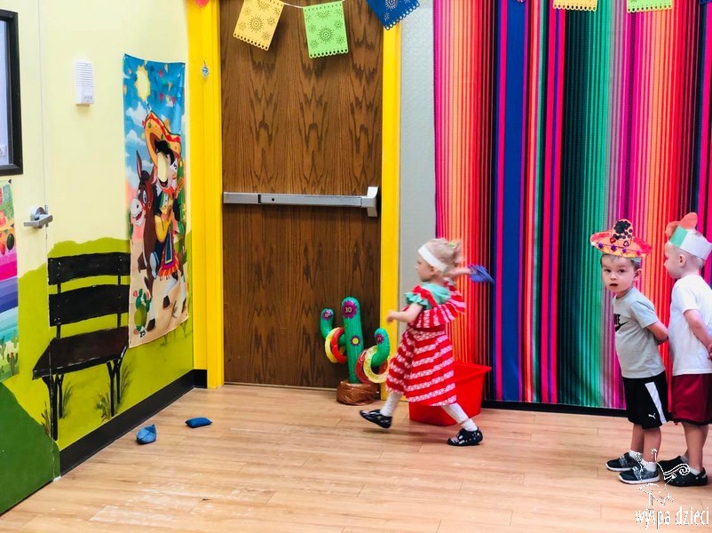 W ostatnim czasie nasze przedszkolaki wzięły udział w meksykańskiej fieście. Od samego rana w naszym przedszkolu rozbrzmiewały gorące rytmy, przy których dzieci odtańczyły kilka meksykańskich tańców. Wielką atrakcją było rozbijanie piniaty, a następnie zbieranie niespodzianek ukrytych w środku…