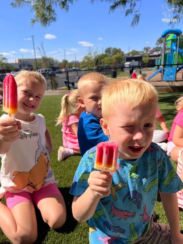 Niestety pomalutku wakacje zbliżają się do końca, ale nasze dzieciaczki z Wyspy Dzieci River Grove korzystają jeszcze do końca z kąpieli słonecznych i wodnych 😉biorąc udział w licznych zabawach z wodą. A takie pluskanie sie w wodzie przynosi wszystkim ochłodę i ogromną radość. I na dodatek jeszcze z pysznym owocowym lodem w ręce 🙂 Zapraszamy do galerii zdjęć