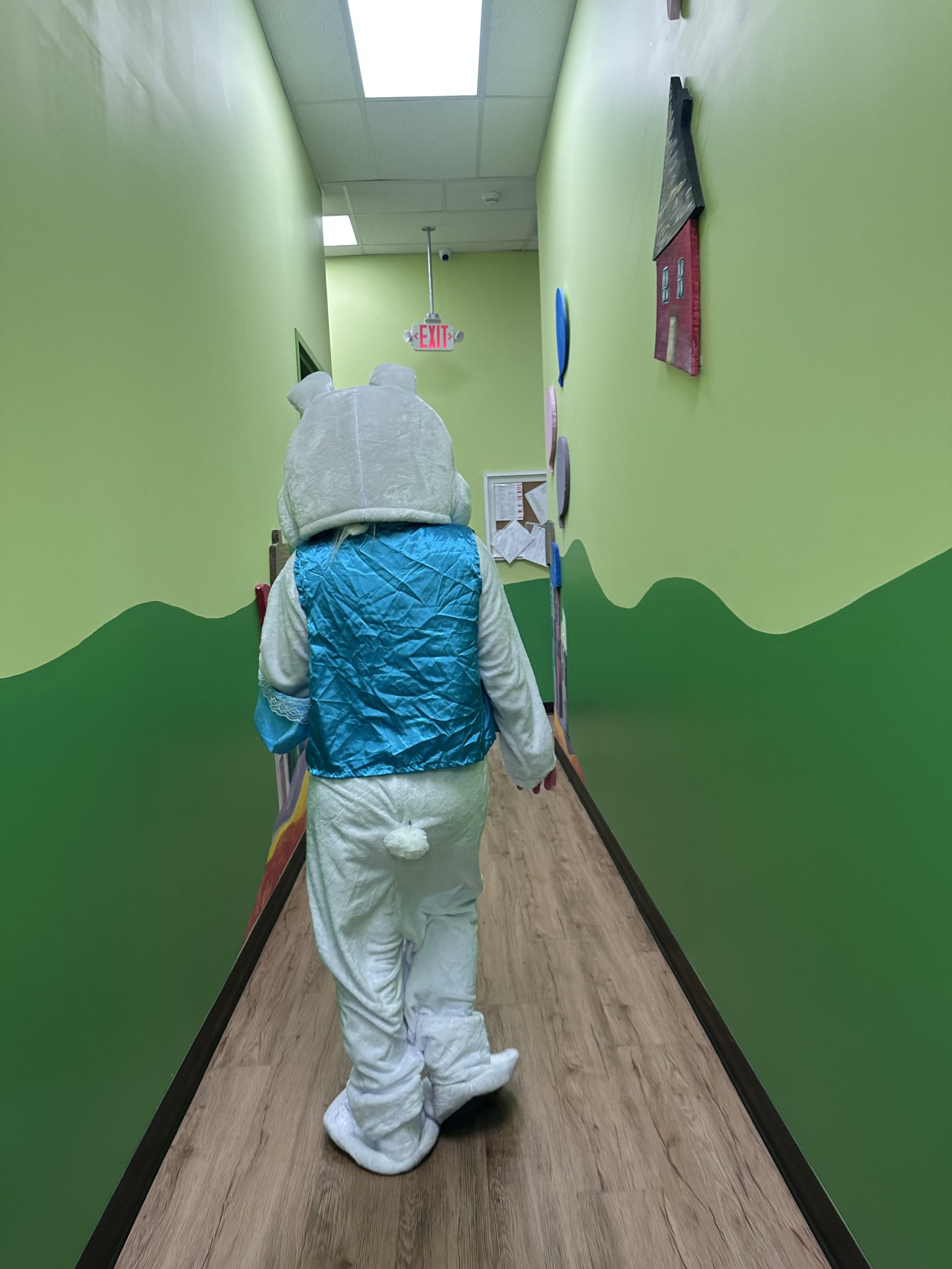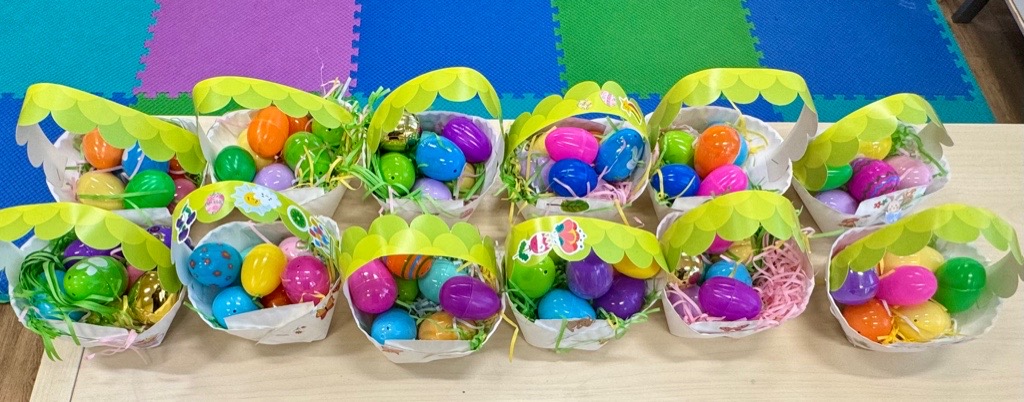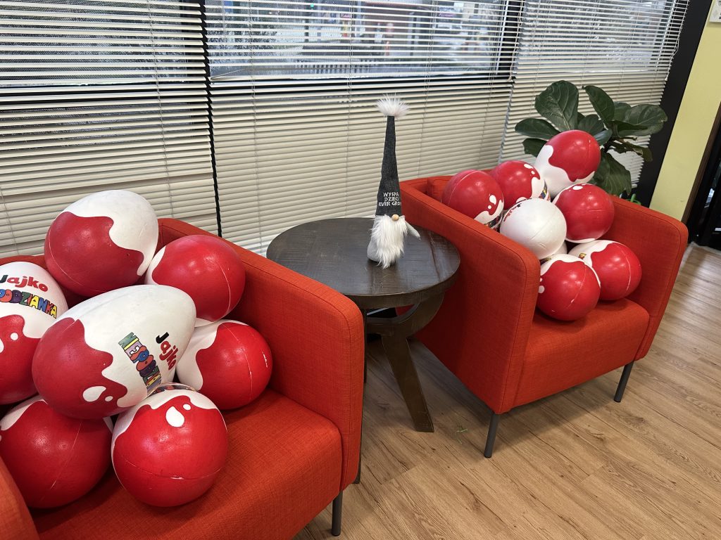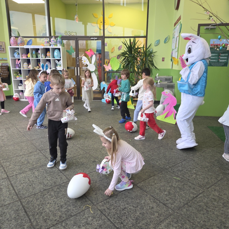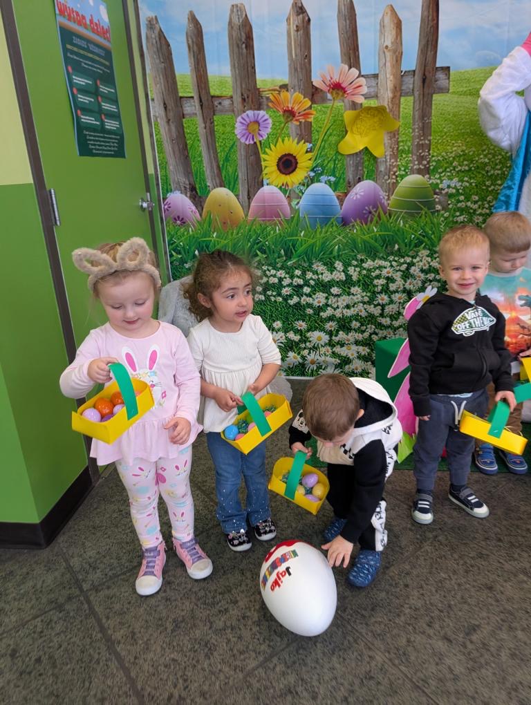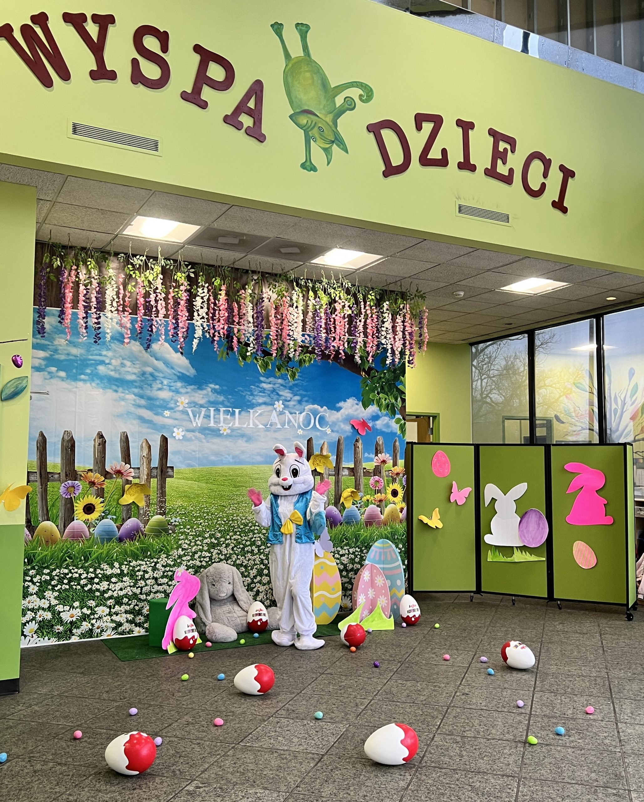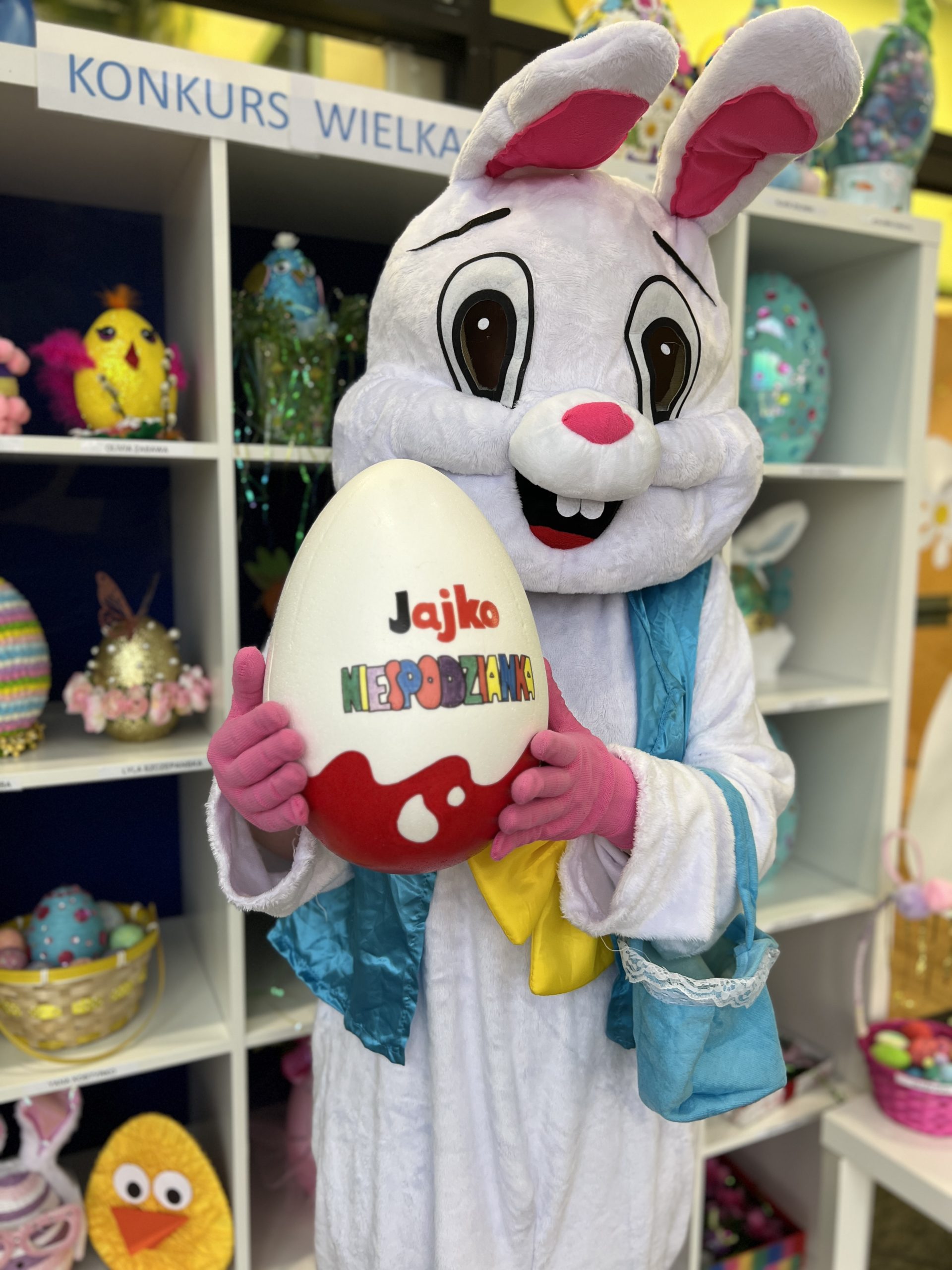 Dla naszych przedszkolaków jedną z najmilszych i najprzyjemniejszych tradycji wielkanocnych jest „Zajączek”. Każdego roku, tuż przed świętami wielkanocnymi nasze przedszkole odwiedza Zajączek. W czwartek 17 kwietnia dzieci z niecierpliwością wypatrywały długo oczekiwanego gościa. Niestety pogoda tego dnia nie była dla nas łaskawa. I z nieba leciały wielkie krople deszczu. Ale dla naszego ZAJĄCA nawet taka pogoda nie jest straszna. Tym razem zrobił naszym przedszkolakom niespodziankę chowając w naszym głównym korytarzu mnóstwo jajeczek wypełnionych niespodziankami. Wszystkie przedszkolaki wcześniej ze swoimi nauczycielami wykonały koszyczki. Dzieci z wypiekami na twarzy zbierały jajeczka do wcześniej przygotowanych koszyczków. Kolejną niespodzianką były dla wszystkich dzieci ogromne jaja, do których dzieci mogły włożyć jajka niespodzianki.