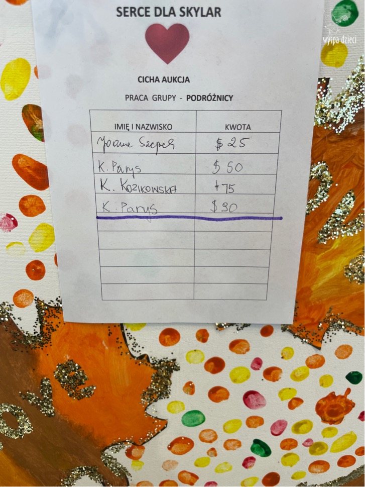 CICHĄ AUKCJE WYGRALI rodzice dzieci podanych poniżej, prace można już odbierać, bardzo prosimy o uregulowanie zwycięskich kwot :