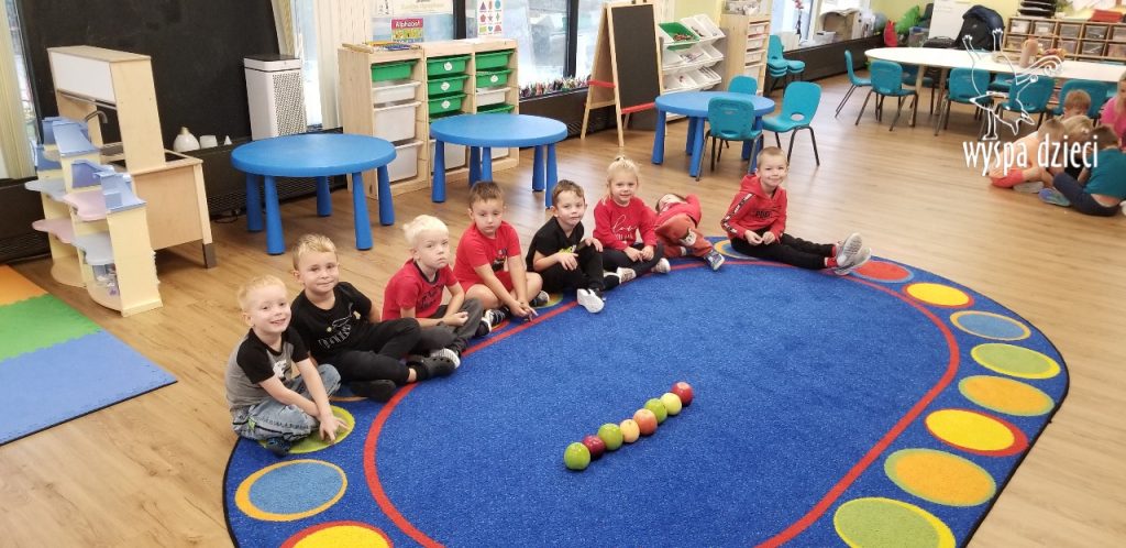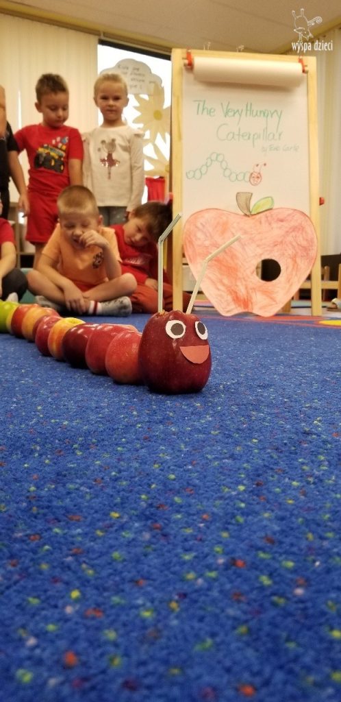 Grupa PreK – WYNALAZCY- z Wyspy Dzieci River Grove w bardzo kreatywny sposób obchodziły ŚWIATOWY DZIEŃ JABŁKA. Wszystkie dzieci w tym dniu przyniosły do przedszkola jabłka z których powstała GĄSIENICĄ. Ten pomysł zrodził się po zaprezentowaniu przez nauczycielki panią Ewę oraz panią Joanne książki pt. „ The Very Hungry Caterpillar”