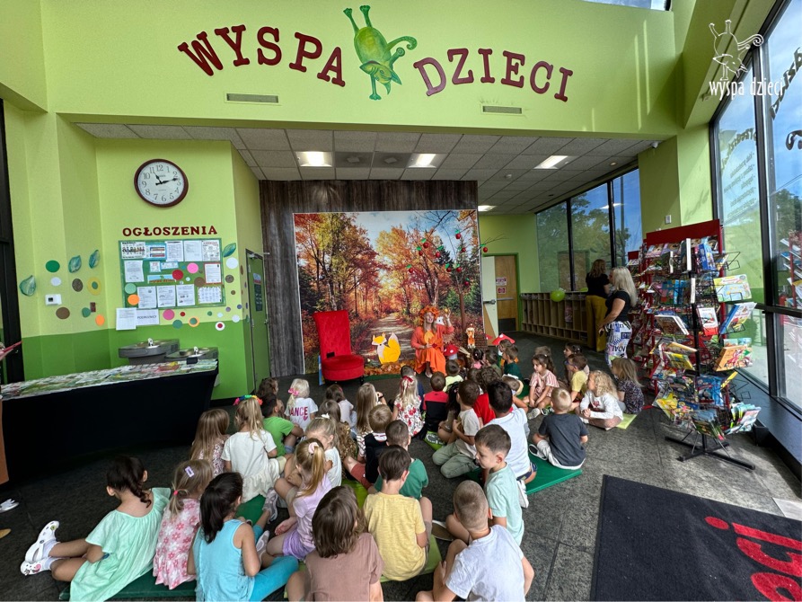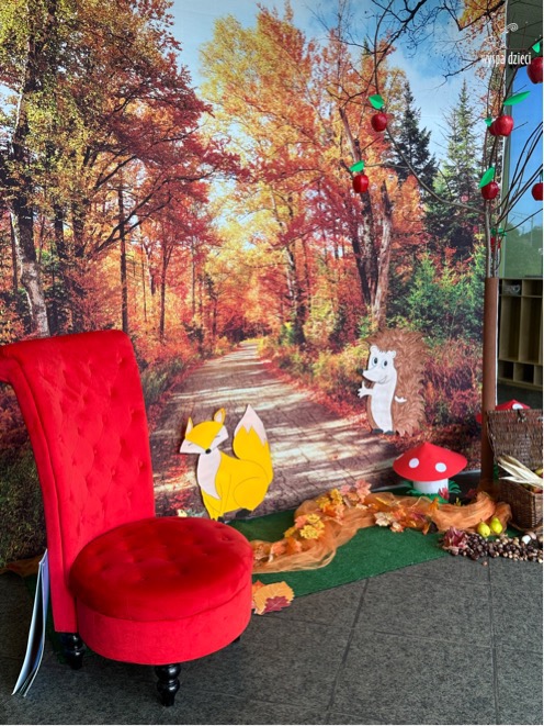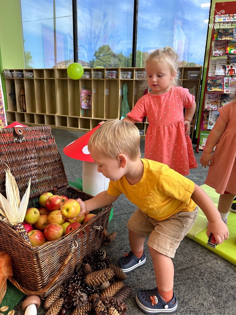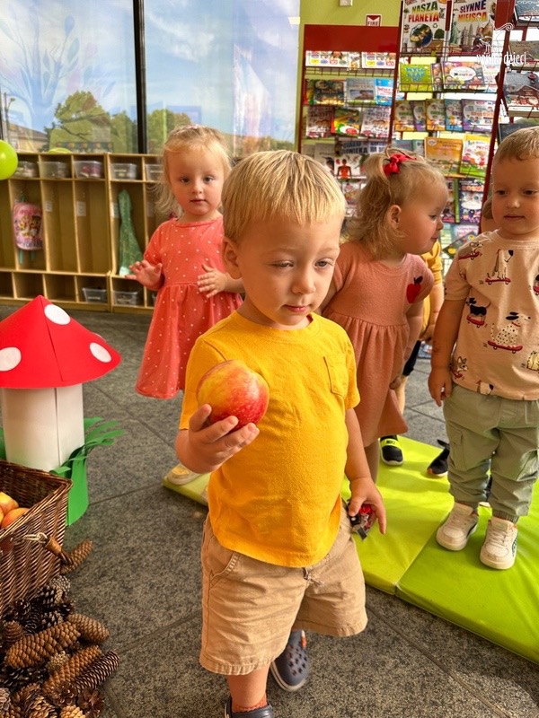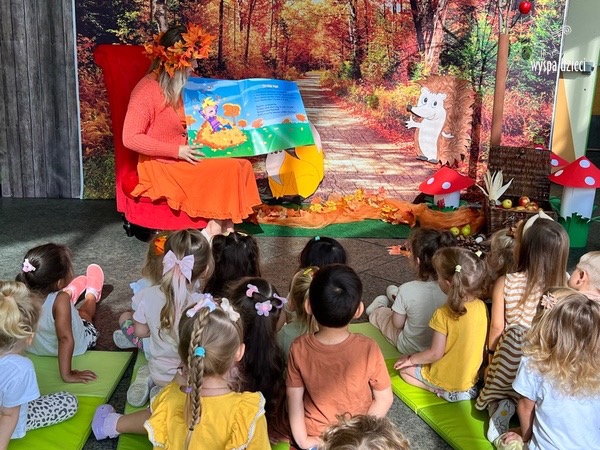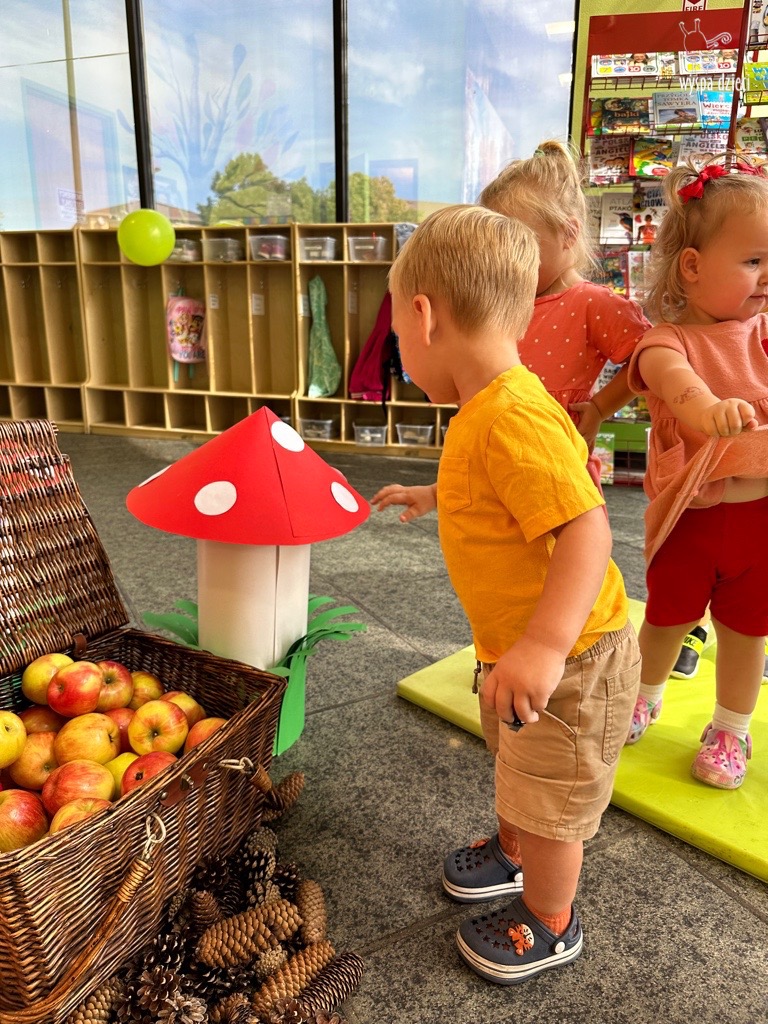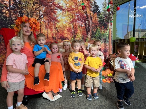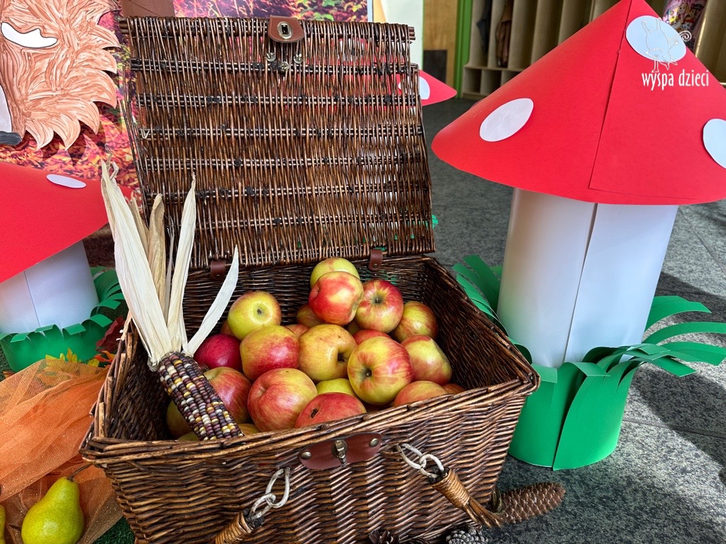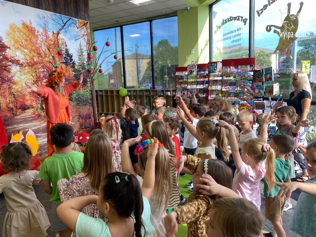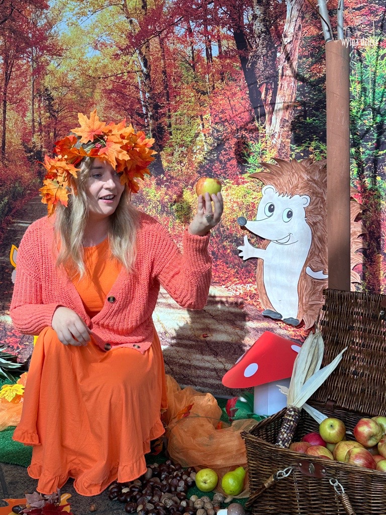 Dzisiaj, czyli w poniedziałek 22 września zawitała do Wyspy Dzieci River Grove  Pani Jesień. Przyniosła ona naszym przedszkolakom wiele jesiennych darów: owoce, warzywa, kasztany, żołędzie, jesienne kwiaty. Dzieci odgadywały jesienne zagadki i zapoznawały się z cechami aktualnej pory roku. Tego dnia królowały barwy jesieni: żółty, czerwony, brązowy oraz pomarańczowy.