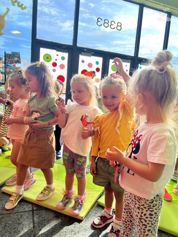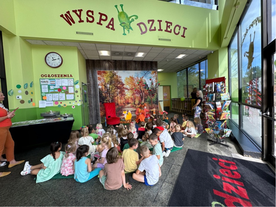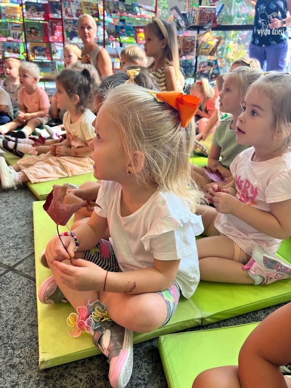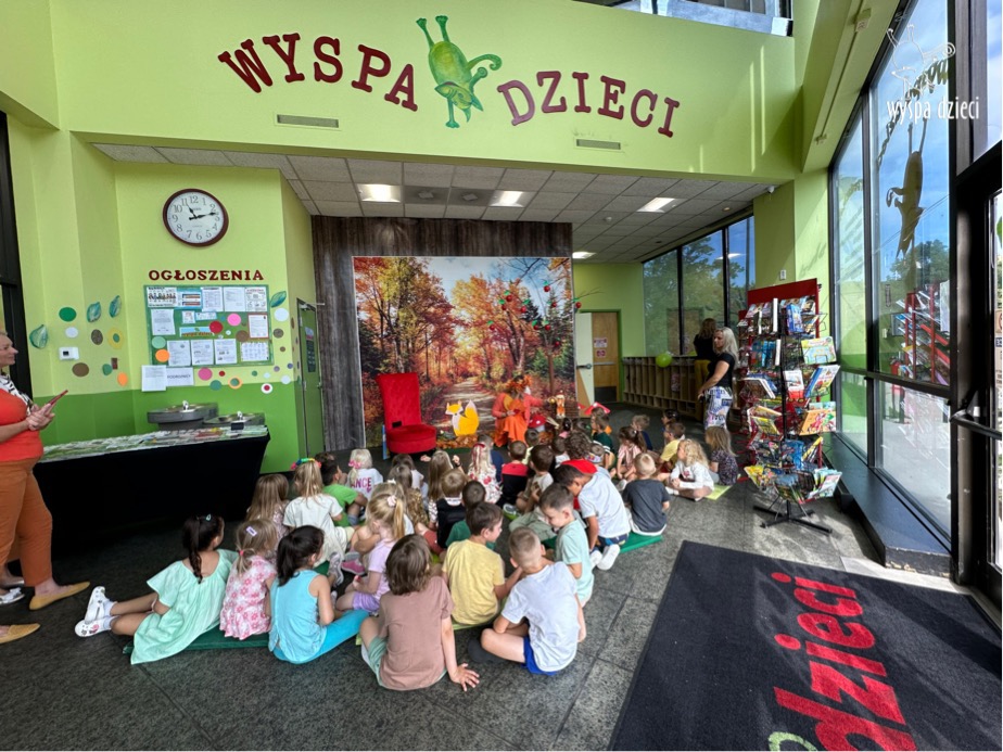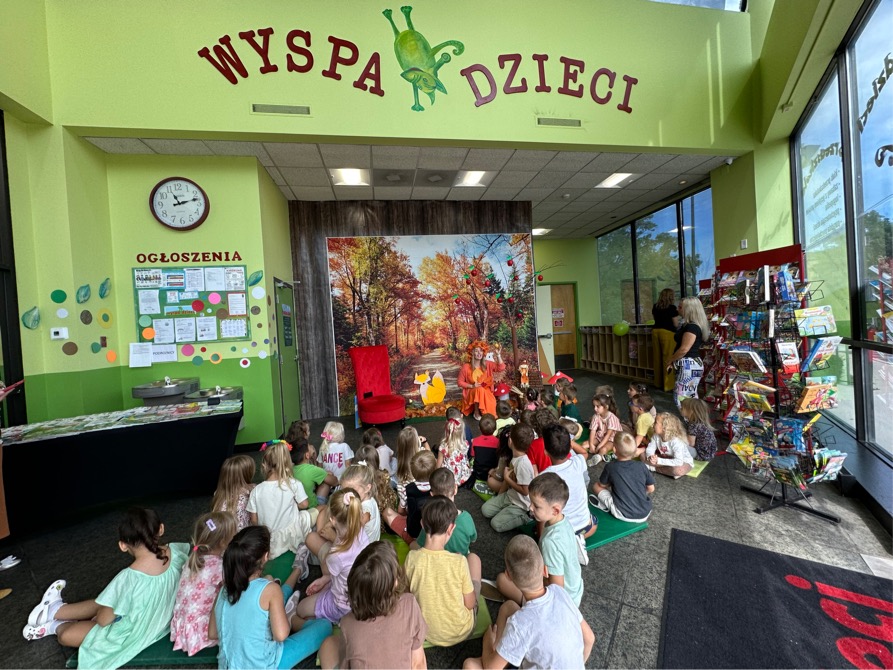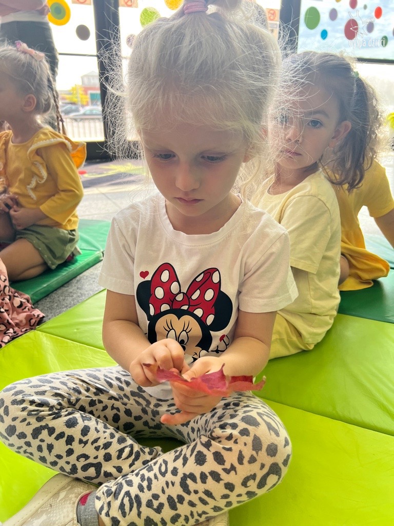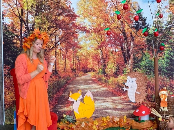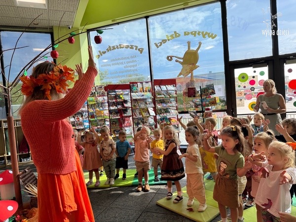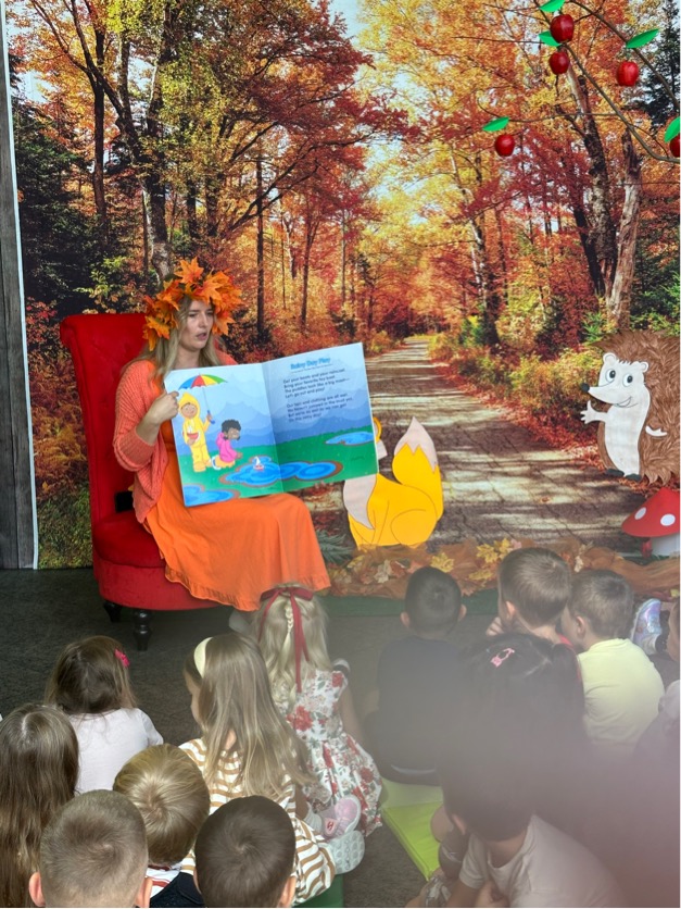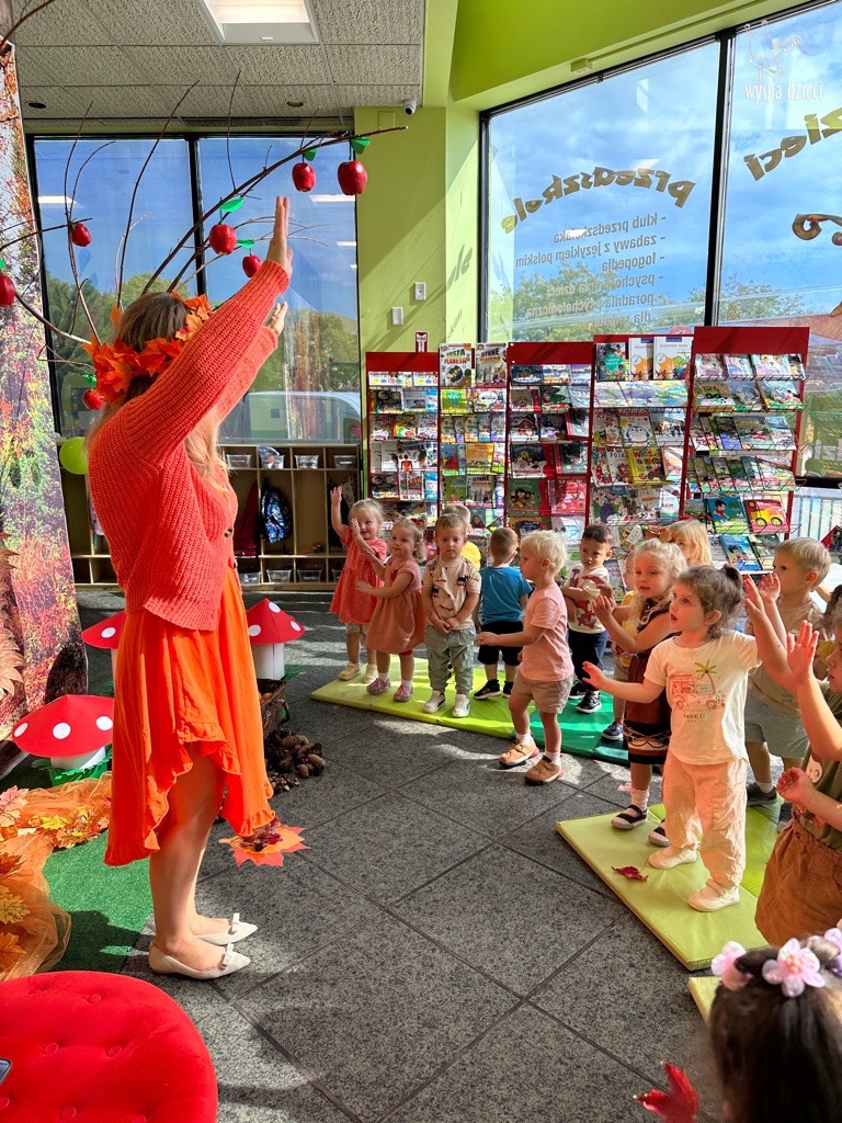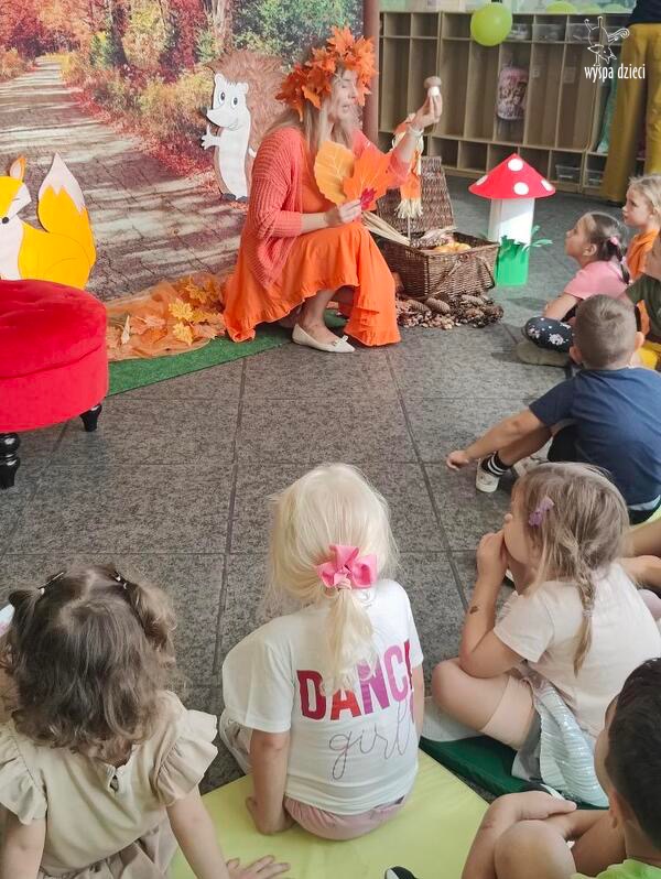 Dzisiaj, czyli w poniedziałek 22 września zawitała do Wyspy Dzieci River Grove  Pani Jesień. Przyniosła ona naszym przedszkolakom wiele jesiennych darów: owoce, warzywa, kasztany, żołędzie, jesienne kwiaty. Dzieci odgadywały jesienne zagadki i zapoznawały się z cechami aktualnej pory roku. Tego dnia królowały barwy jesieni: żółty, czerwony, brązowy oraz pomarańczowy.